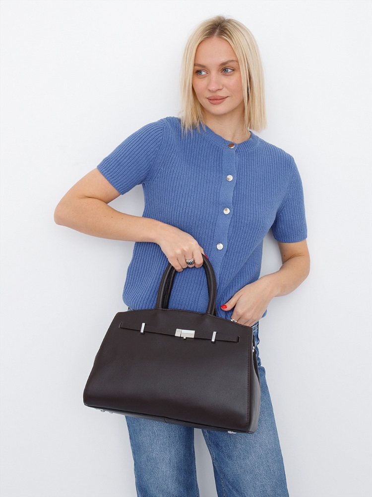 Длина (см): 36 Высота (см): 23 Вес (г): 900 Бренд: Polina&Eiterou Материал: Натуральная кожа Вместительная сумка, выполнена из натуральной кожи. Декорирована ремнем на корпусе. Дополнена серебристой фурнитурой. Данная модель закрывается на молнию. Каркас жесткий. Носится в руке за встроенные ручки или на плече. В комплекте имеется съемный ремень с регулировкой длины. Внутри: подкладочная ткань, на боковых частях два кармана на молниях и два открытых. Снаружи: основной отдел закрывается на молнию. На задней части карман на молнии. Комментарии к товару