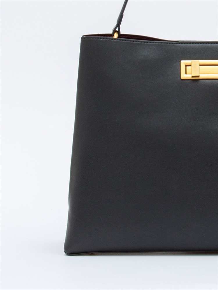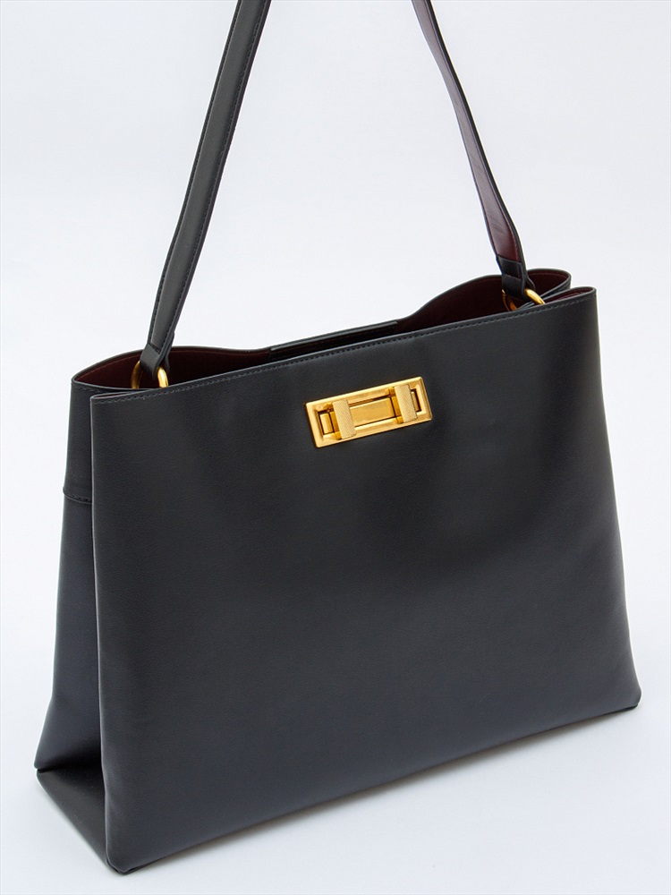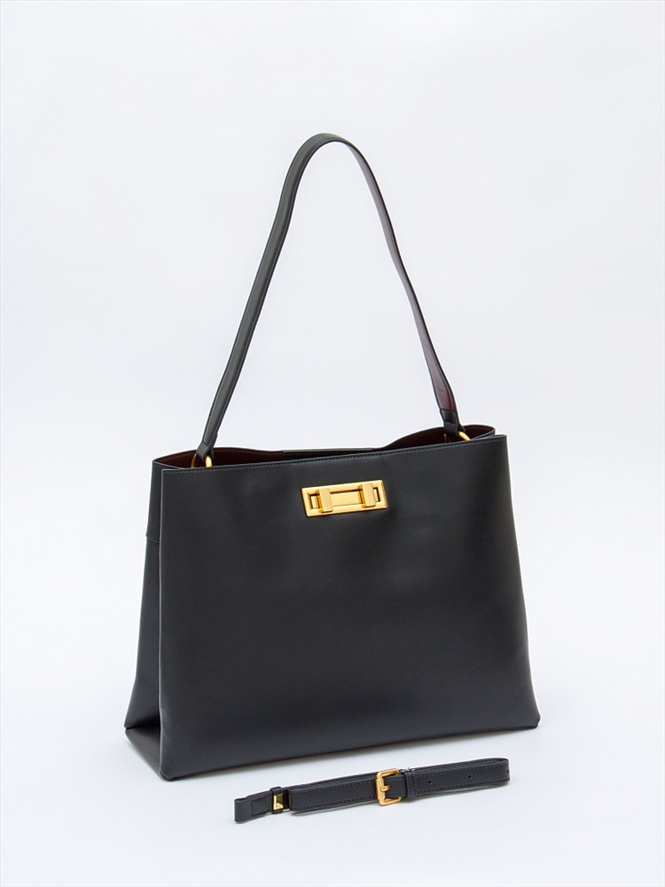 Стильная модель, выполнена из натуральной кожи. Дополнена золотистой фурнитурой. Данная модель закрывается на вертушку. Носится в руке за встроенную ручку или на плече, в комплекте имеется съемный ремень с регулировкой длины. Каркас полужесткий. На дне предусмотрены ножки.