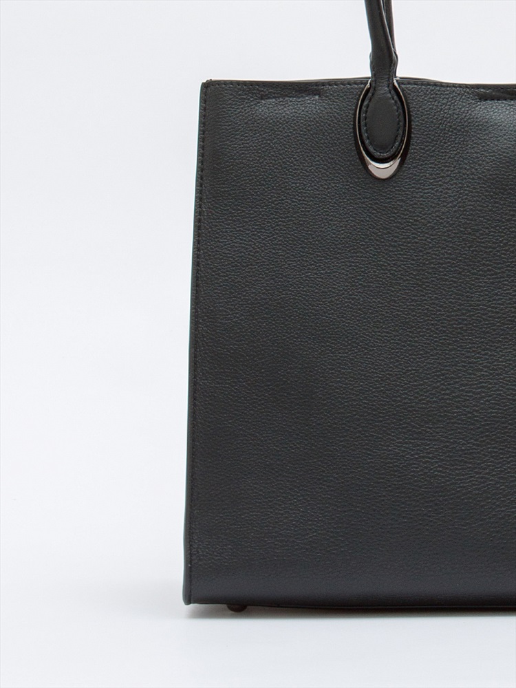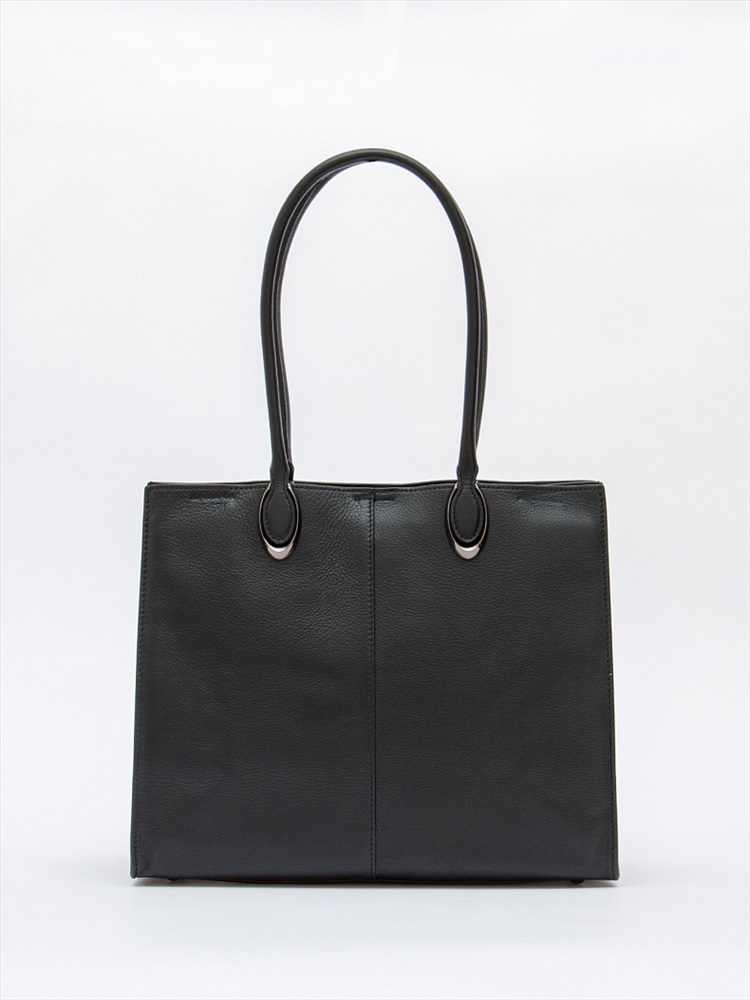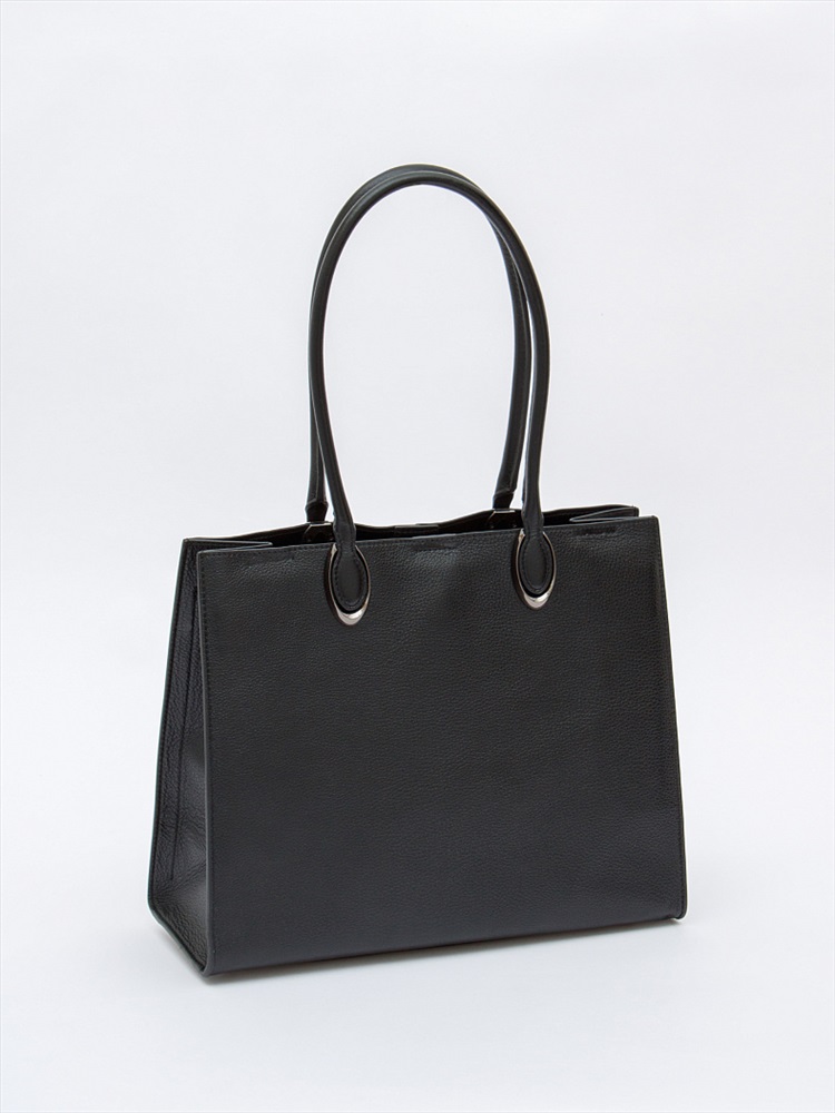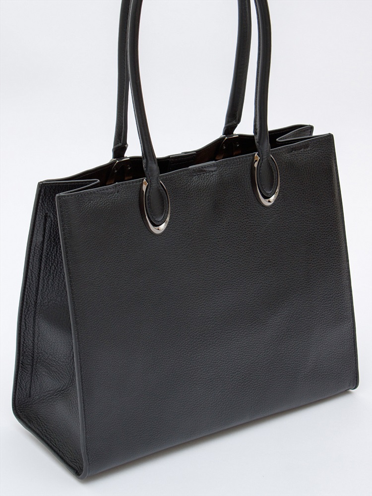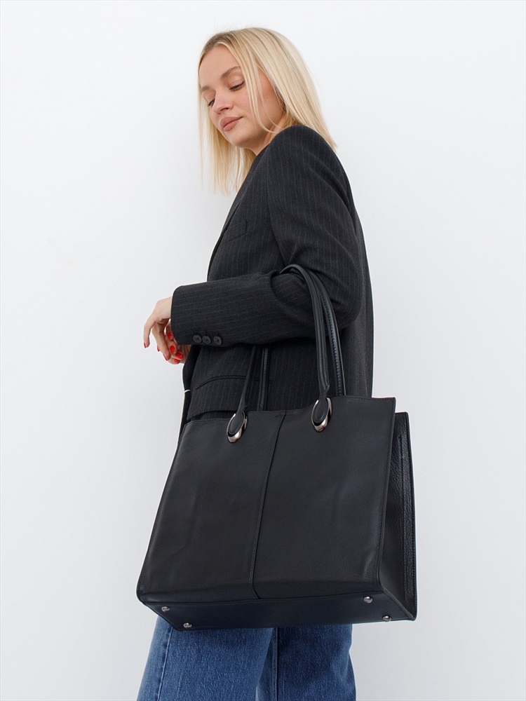 Стильная модель-тоут, выполнена из натуральной кожи. Дополнена серебристой фурнитурой. Данная модель закрывается на молнию. Каркас жесткий. Носится в руке или на плече за встроенные удлиненные ручки.