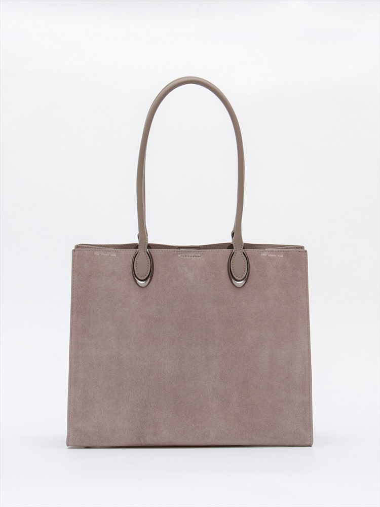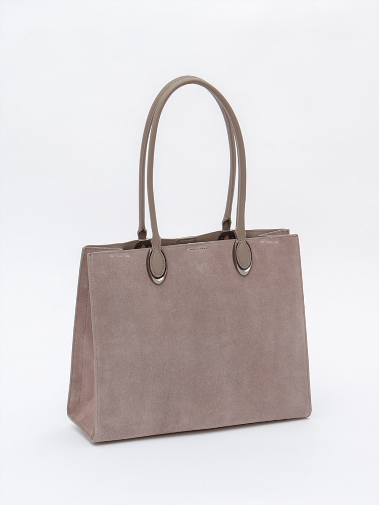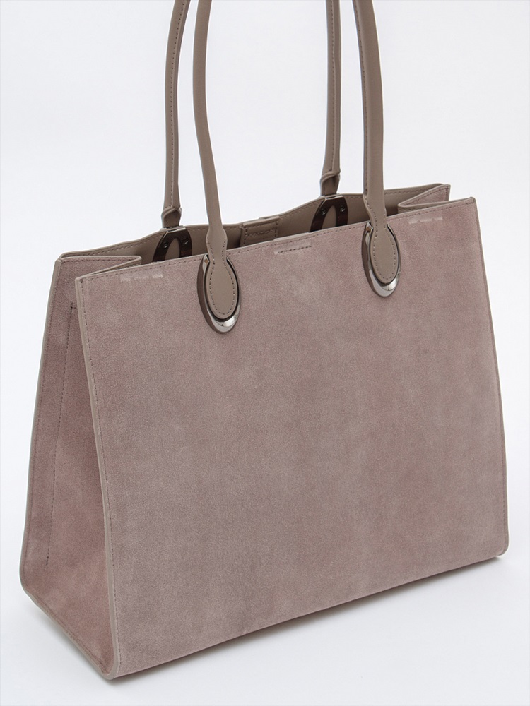 Материал: Замша Стильная модель-тоут, выполнена из замши. Дополнена серебристой фурнитурой. Данная модель закрывается на молнию. Каркас жесткий. Носится в руке или на плече за встроенные удлиненные ручки.