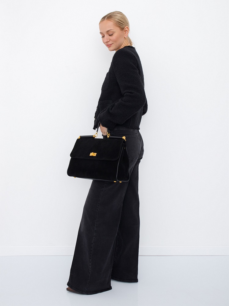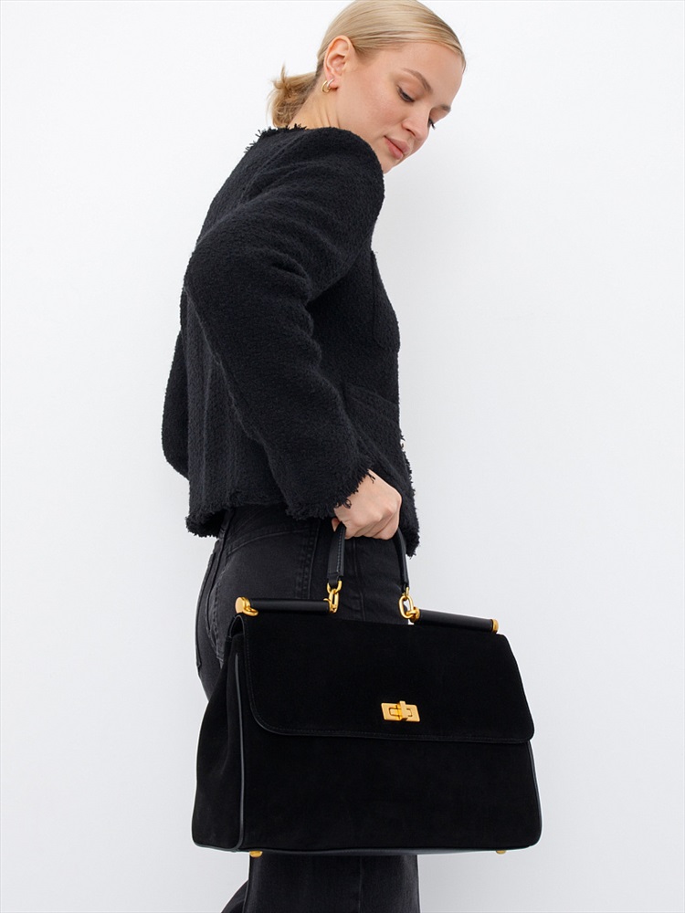 Длина (см): 35 Высота (см): 23 Вес (г): 1000 Бренд: Polina&Eiterou Материал: Замша Сумка-сэтчел, выполнена из замши. Дополнена золотистой фурнитурой. Данная модель закрывается на клапан, носится в руке за встроенную ручку или на плече. В комплекте имеется ремень с регулировкой длины. Каркас полужёсткий. На дне предусмотрены ножки. Внутри: подкладочная ткань, на боковых стенках есть карман на молнии и открытый. Снаружи: основной отдел закрывается на молнию под клапаном. На задней части карман на молнии. Комментарии к товару