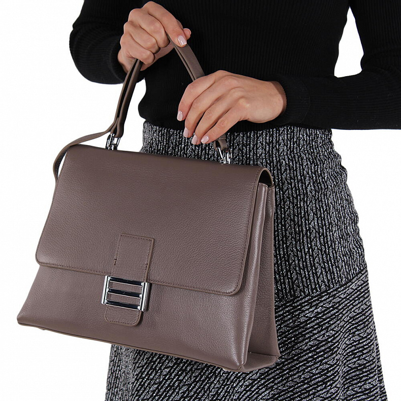 Материал: Натуральная кожа Базовая модель сумки-сэчел, выполнена из натуральной кожи. Декорирована пряжкой на клапане. Дополнена серебристой фурнитурой. Данная модель закрывается на клапан, носится на плече или через плечо с помощью ремня, а так же в руке за ручку. Каркас полужесткий. На дне предусмотрены ножки для устойчивости.