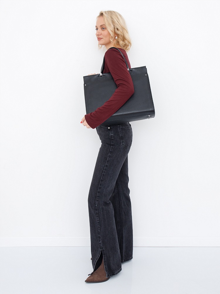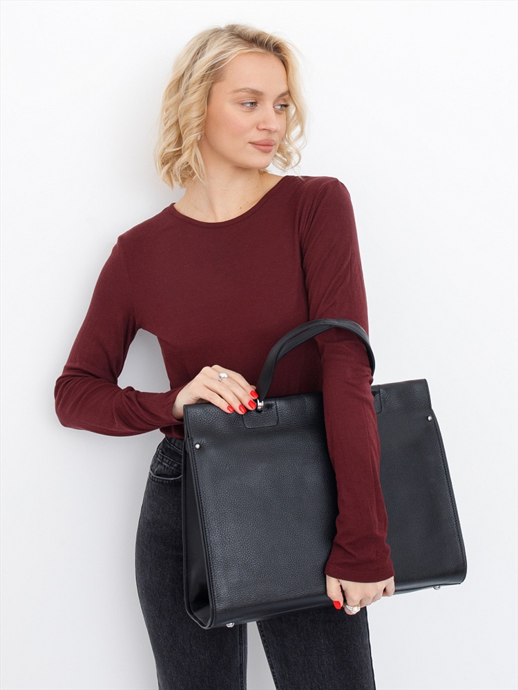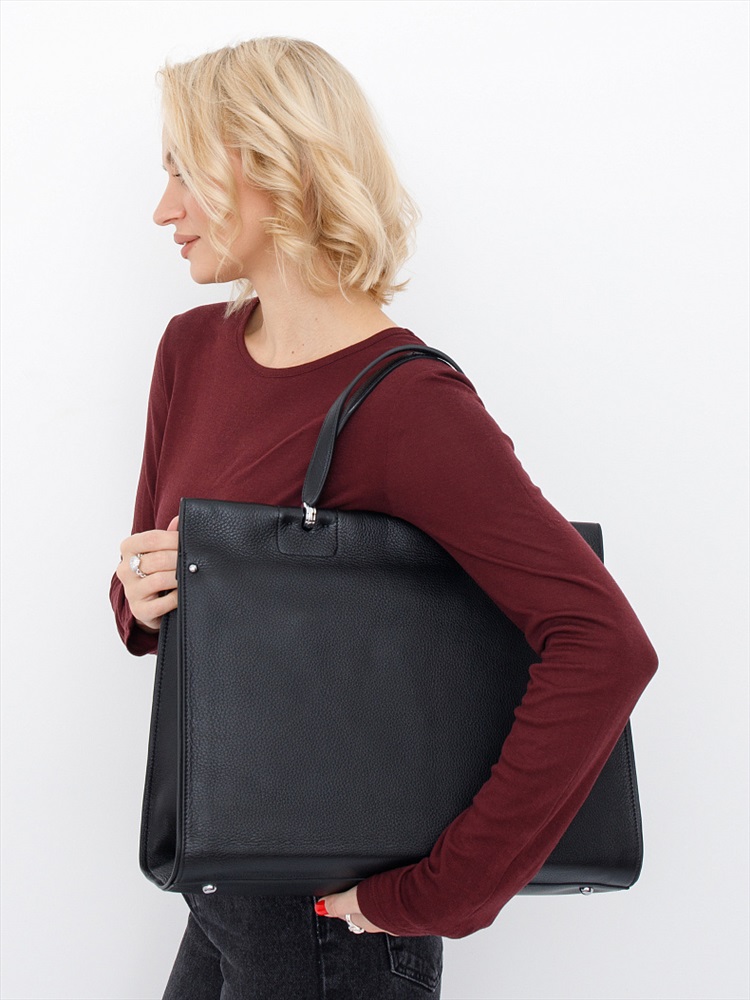 Длина (см): 39 Высота (см): 30 Вес (г): 1300 Бренд: Polina&Eiterou Материал: Натуральная кожа Модель формата А4, выполнена из натуральной кожи. Дополнена серебристой фурнитурой. Данная модель закрывается на молнию. Каркас полужесткий. Носится в руке за встроенные ручки или на плече. В комплекте имеется съемный ремень с регулировкой длины. На дне предусмотрены ножки. Внутри: подкладочная ткань, отдел с перегородкой на молнии, на боковых частях карман на молнии и открытый. Снаружи: отдел на молнии. На задней части карман на молнии. Комментарии к товару