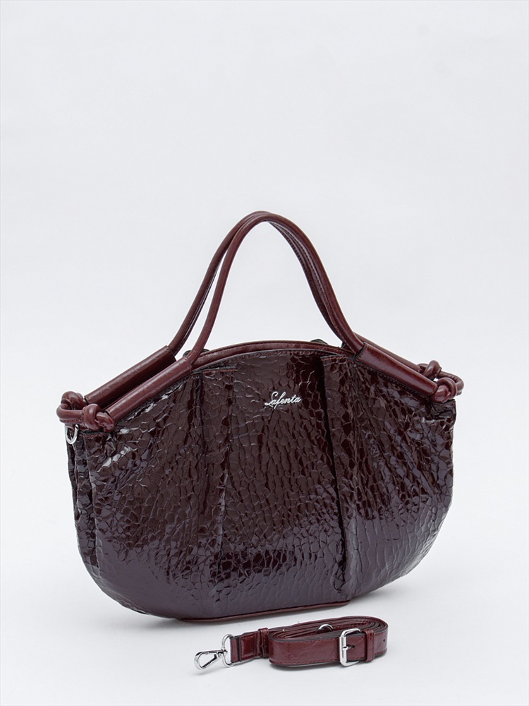 Модель в форме лодочки, выполнена из экокожи. Декорирована логотипом на передней части. Дополнена серебристой фурнитурой. Данная модель закрывается на молнию. Каркас мягкий. Носится в руке за встроенные удлиненные ручки, или на плече. В комплекте имеется съемный ремень с регулировкой длины.