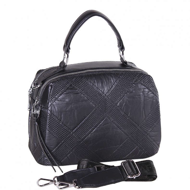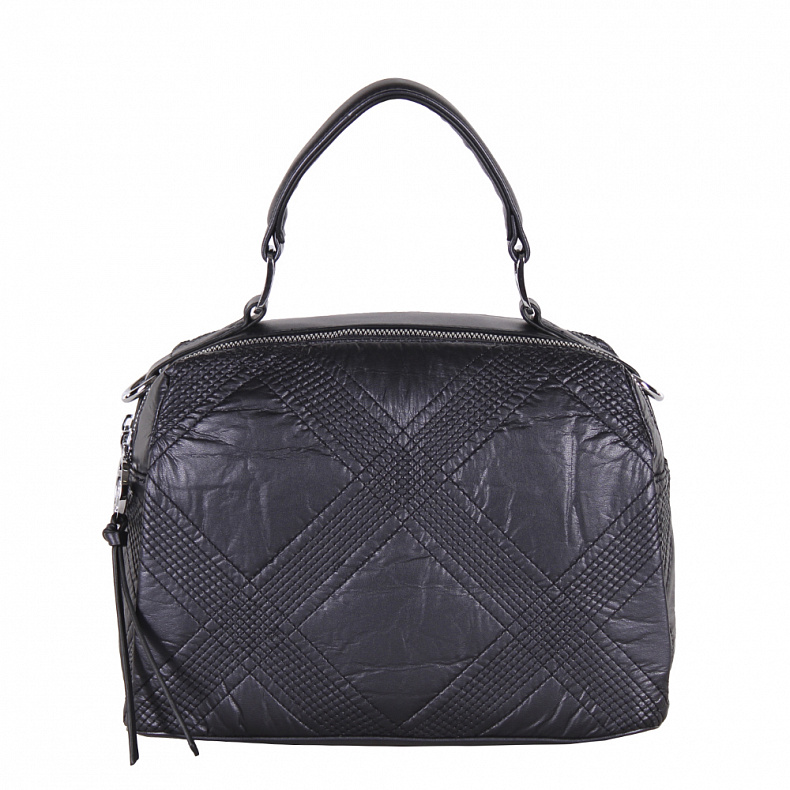 Материал: Экокожа Сумка-бочонок со стежкой, выполнена из экокожи.  Дополнена серебристой фурнитурой. Данная модель закрывается на молнии. Каркас полужесткий. Носится через плечо за ремень. В комплекте есть ремень с регулировкой длины или в руке за встроенную  ручку.