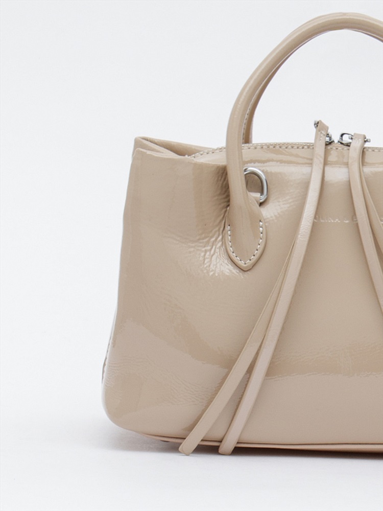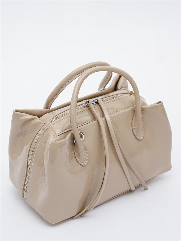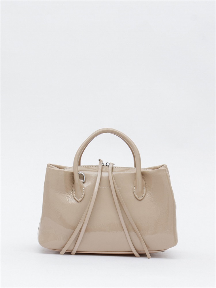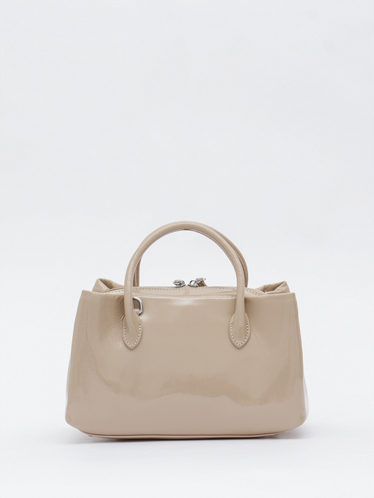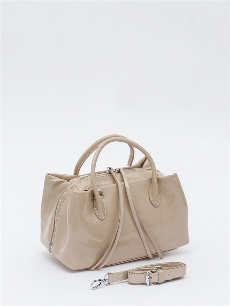 Миниатюрная модель, выполнена из кожи. Дополнена серебристой фурнитурой. Данная модель закрывается на молнию. Каркас полужесткий. Носится в руке за встроенные ручки или на плече. В комплекте имеется съемный ремень с регулировкой длины. На дне предусмотрены ножки.
