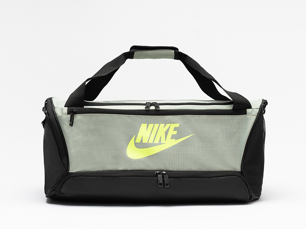 Цвет: Серый Вид аксессуаров: Сумки Шикарная сумка Nike черно-серого цвета выполнена из качественной ткани. Сумка закрывается на змейку снаружи, носится через плечо. Есть дополнительные отделения на торце и сбоку. У аксессуара с двумя длинными удобными ручками имеется усилитель держателя тканевой на липучке. Модель станет отличным вариантом для тренировок, походов. Основной доминантой на лицевой стороне выступает крупный желтый принт логотипа бренда и его название.