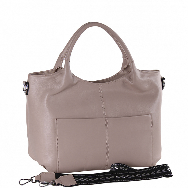 Внутри подкладочный материал, отдел с перегородкой на молнии, на боковых стенках карман на молнии и два открытых кармана.