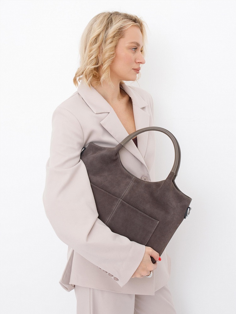 Материал: Замша, Натуральная кожа Базовая сумка, выполнена из натуральной замши и кожи. Дополнена серебристой фурнитурой. Данная модель закрывается на молнию, носится в руке за встроенные ручки. Или на плече, в комплекте имеется ремень с регулировкой длины. Каркас полужесткий.