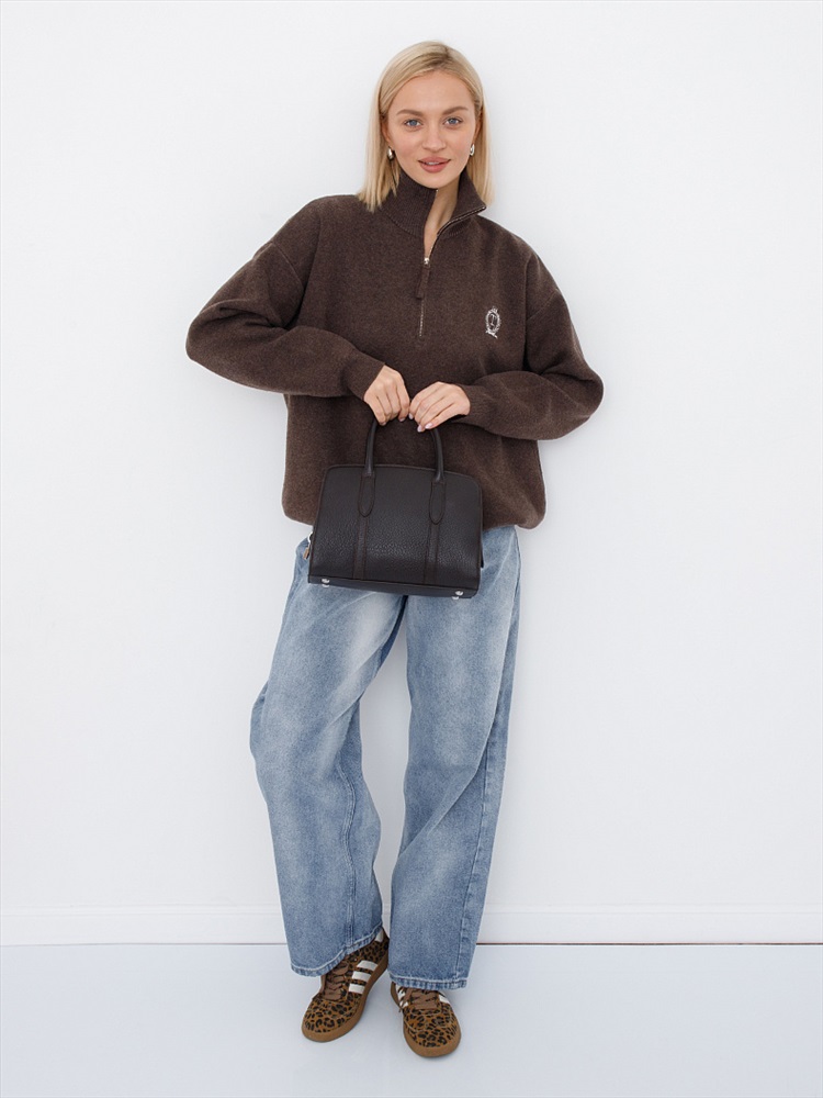 Длина (см): 27 Высота (см): 20 Вес (г): 500 Бренд: Velina Fabbiano-Safenta Материал: Замша Компактная модель, выполнена из натуральной кожи. Дополнена серебристой фурнитурой. Основной отдел закрывается на молнию. Сумка носится в руке за строенные ручки или на плече, в комплекте имеется съемный ремень с регулировкой длины. Каркас полужёсткий. Внутри: подкладочная ткань, на боковых стенках карман на молнии и открытый. Снаружи: основной отдел застёгивается на молнию. Комментарии к товару