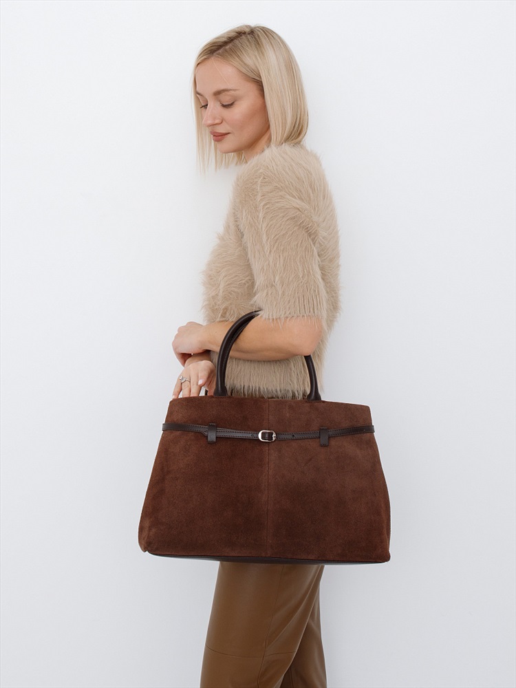 Длина (см): 37 Высота (см): 26 Вес (г): 850 Бренд: Velina Fabbiano-Safenta Материал: Замша Стильная модель, выполнена из натуральной замши. Дополнена серебристой фурнитурой. Декорирована ремнем на корпусе. Основной отдел закрывается на молнию. Сумка носится в руке за строенные ручки или на плече, в комплекте имеется съемный ремень с регулировкой длины. Каркас мягкий. По бокам имеются расширители. Внутри: подкладочная ткань, на боковых стенках карман на молнии и открытый. Снаружи: основной отдел застёгивается на молнию. Комментарии к товару
