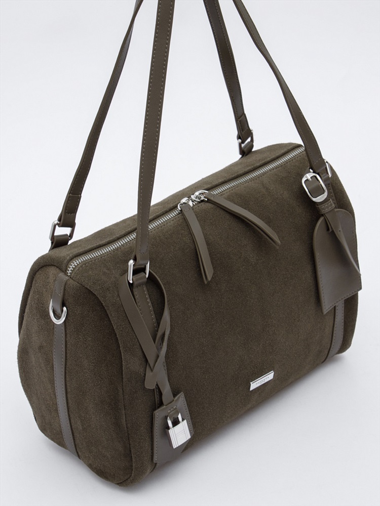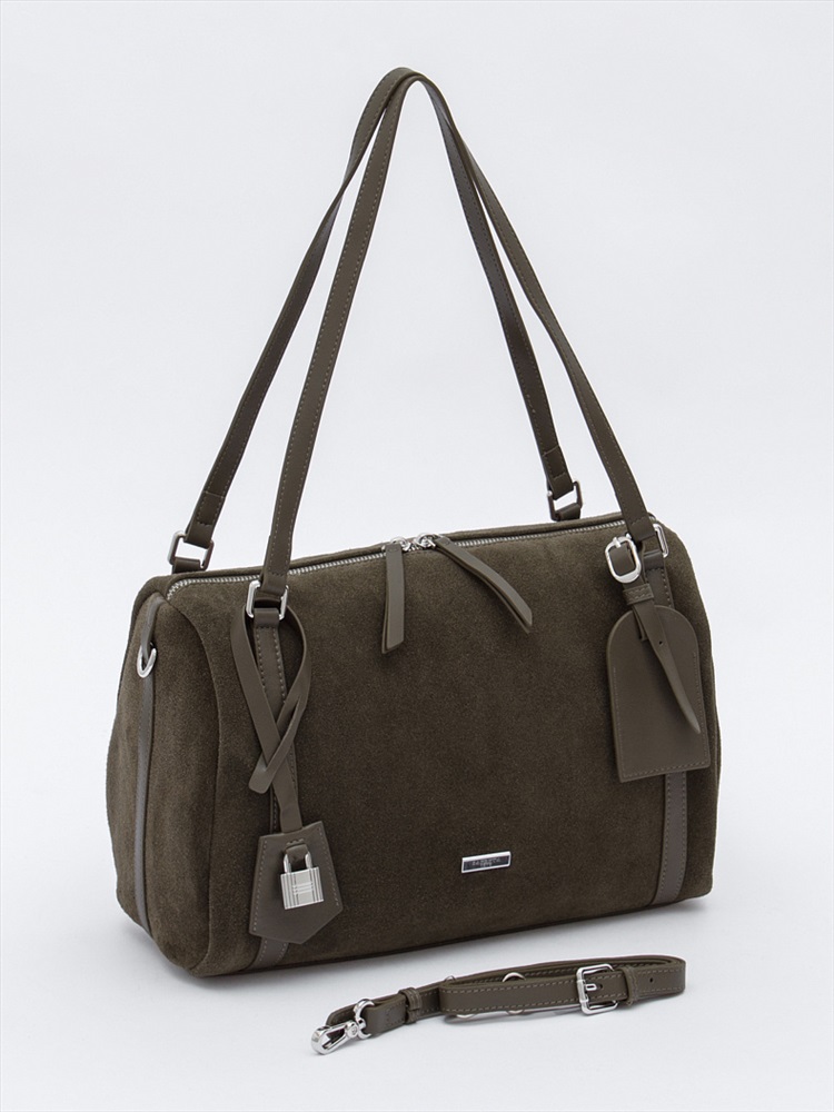 Материал: Замша Базовая сумка, выполнена из замши. Декорирована брелоком. Дополнена серебристой фурнитурой. Данная модель закрывается на молнию. Каркас мягкий. Носится в руке за встроенные ручки, или на плече. В комплекте имеется съемный ремень с регулировкой длины.