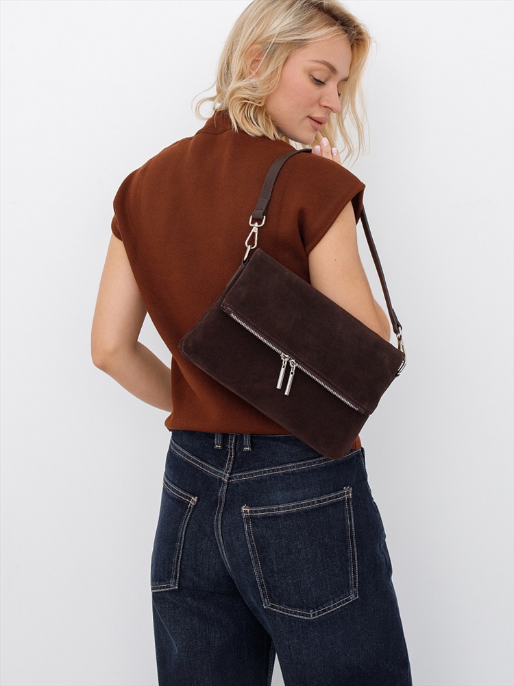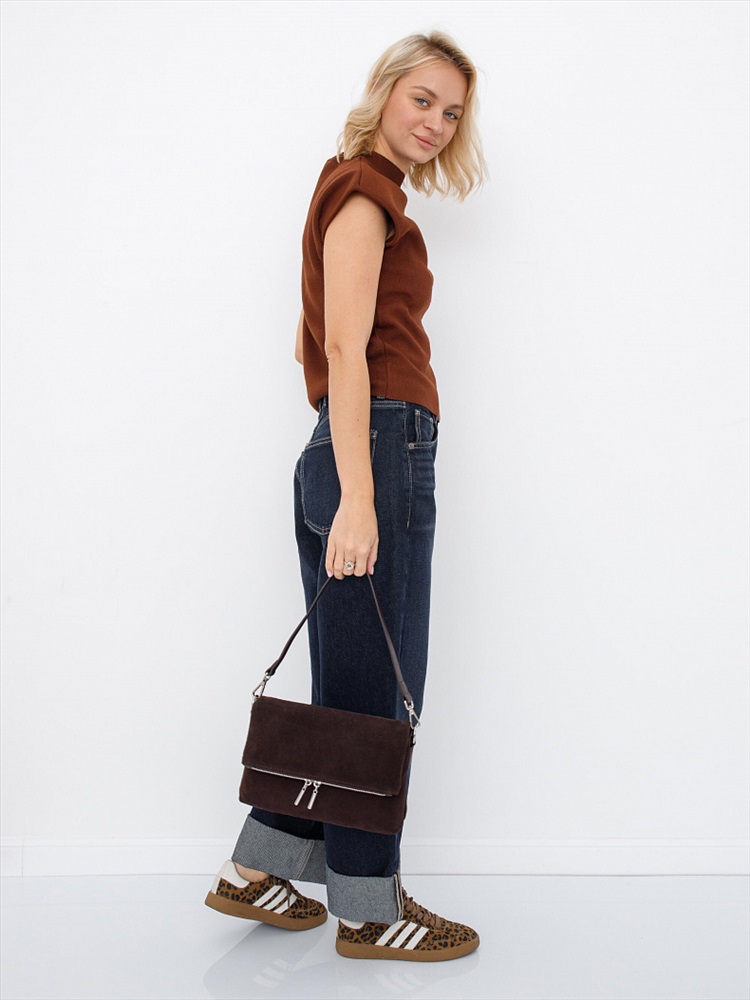 Длина (см): 26 Высота (см): 18 Вес (г): 650 Бренд: Polina&Eiterou Материал: Замша Модель кросс-боди, выполнена из замши. Дополнена серебристой фурнитурой. Данная модель закрывается на клапан. Каркас полужесткий. Носится в руке за съемную удлиненную ручку или на плече. В комплекте имеется съемный ремень с регулировкой длины. Внутри: подкладочная ткань, на боковых частях карман на молнии и без. Снаружи: под клапаном два отдела на молниях. Отдел на клапане. На задней части карман на молнии. Комментарии к товару