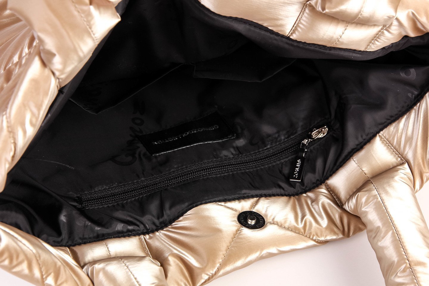 Стеганая сумка-шоппер прекрасно дополнит ваш образ. Выполнена из водонепроницаемого материала и имеет оптимальный вместительный размер. Застежка на кнопку-магнит, дно сумки жесткое. Внутри сумки – 2 кармана, накладной карман с двумя отсеками для телефона и различной мелочи и карман на молнии.