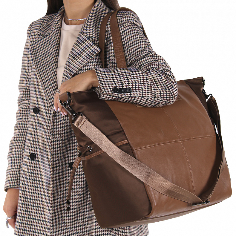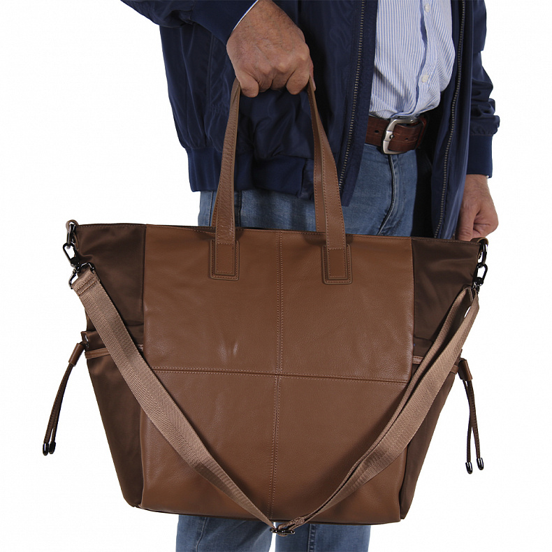 Длина (см): 34 Высота (см): 35 Вес (г): 950 Бренд: Polina&Eiterou Материал: Натуральная кожа, Текстиль Дорожная сумка выполнена из натуральной кожи и текстиля. Дополнена серебристой фурнитурой. Данная модель закрывается на молнию, носится в руке или на плече с помощью ремня. В комплекте предусмотрен ремень-стропа с регулировкой длины. Каркас мягкий. Внутри: подкладочная ткань, на боковых стенках есть карман на молнии и открытый. Снаружи: основной отдел на молнии. На задней части карман на молнии. По бокам два открытых кармана. Комментарии к товару