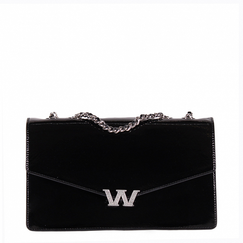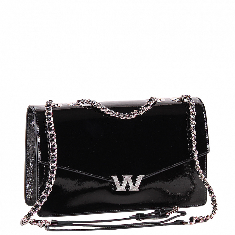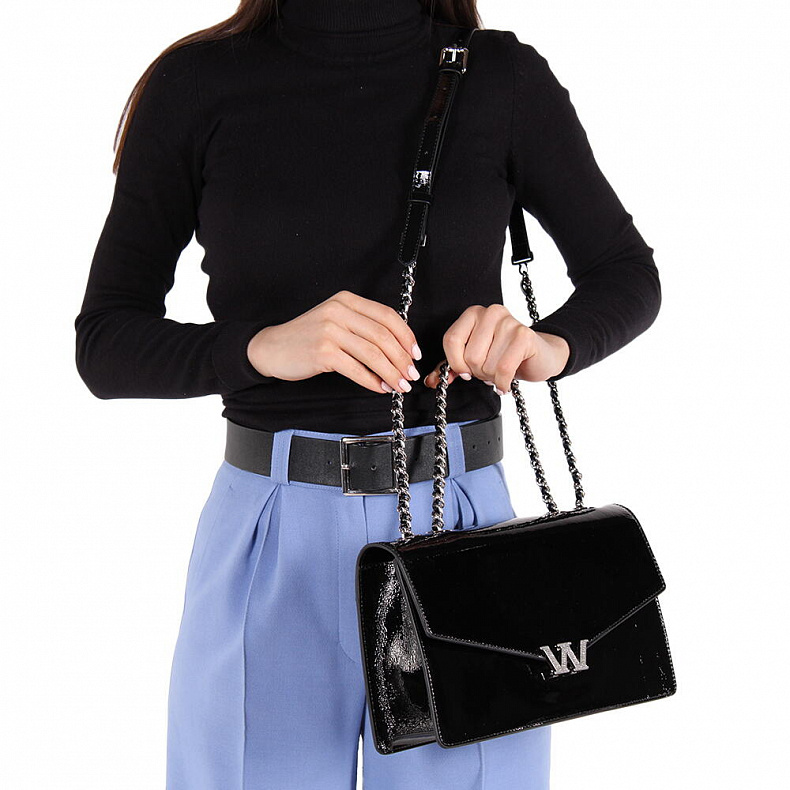 Модель на цепочке из лаковой кожи.