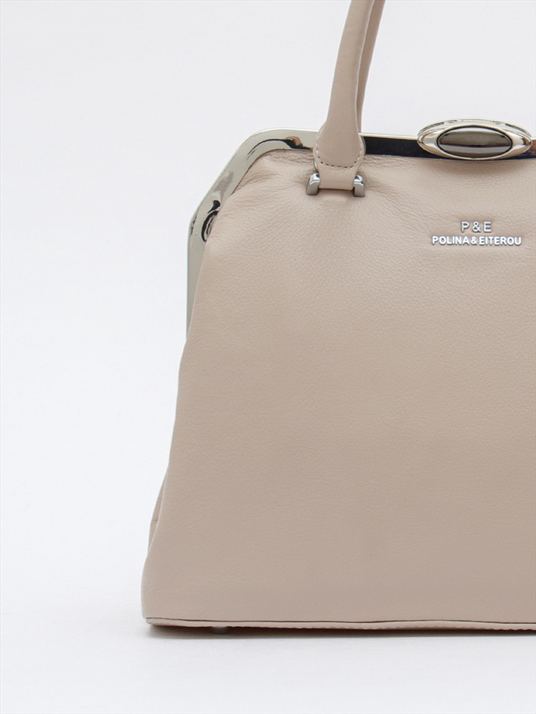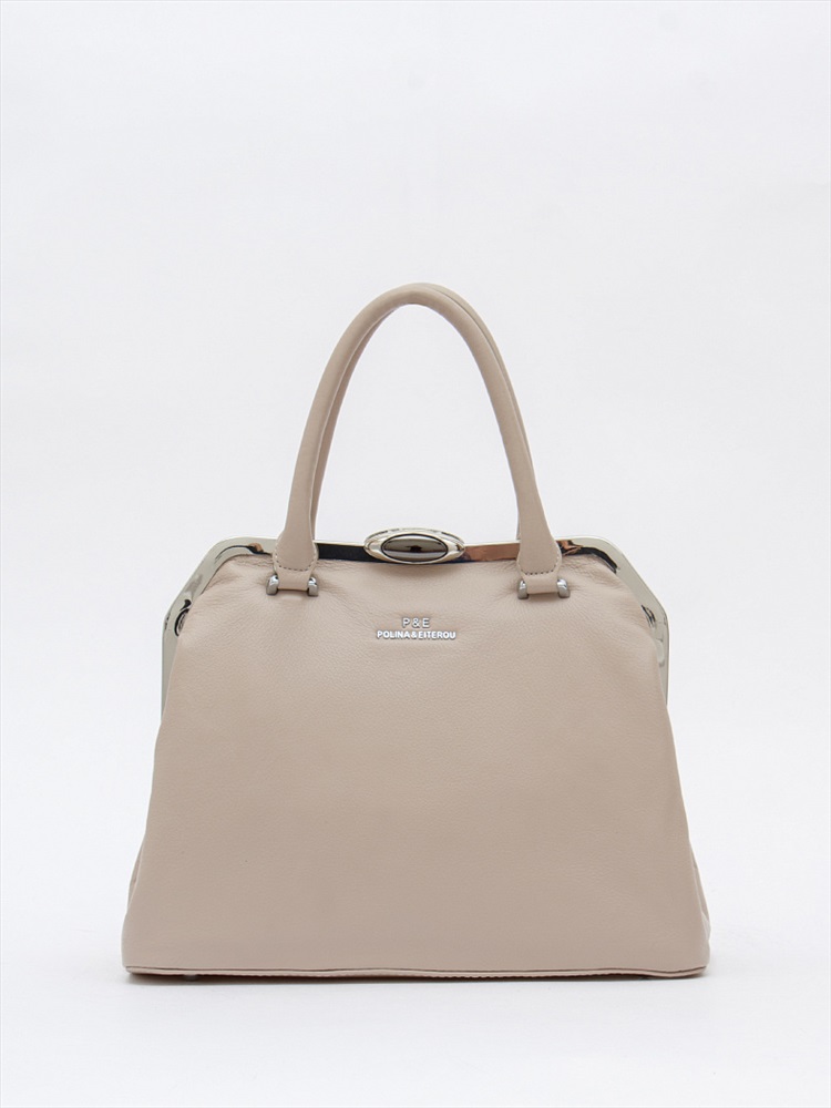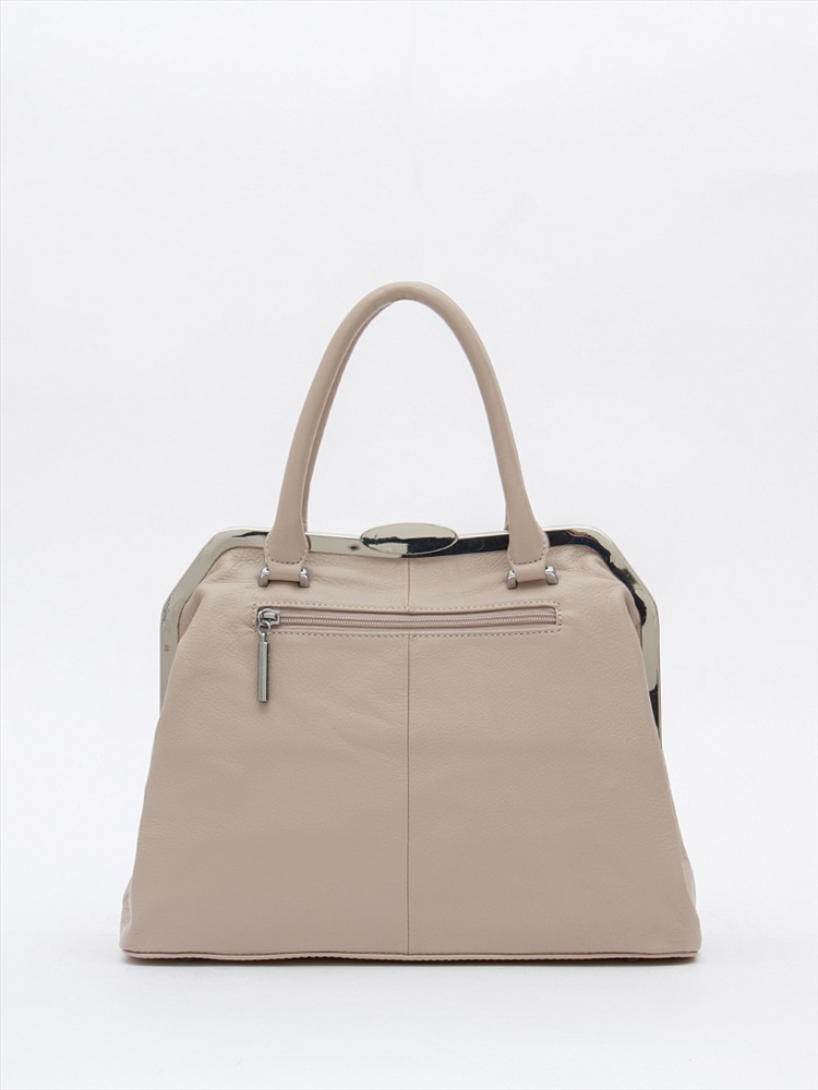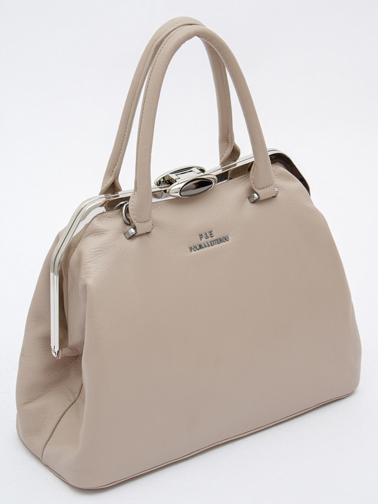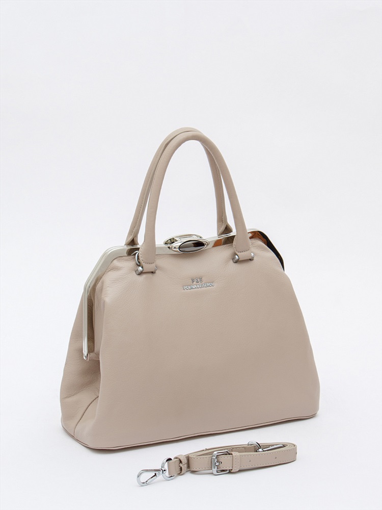 Базовая модель, выполнена из натуральной кожи. Декорирована логотипом на передней части. Дополнена серебристой фурнитурой. Данная модель закрывается на вертушку, носится в руке за встроенные ручки. Или на плече, в комплекте имеется ремень с регулировкой длины. Каркас полужесткий. На дне предусмотрены ножки.