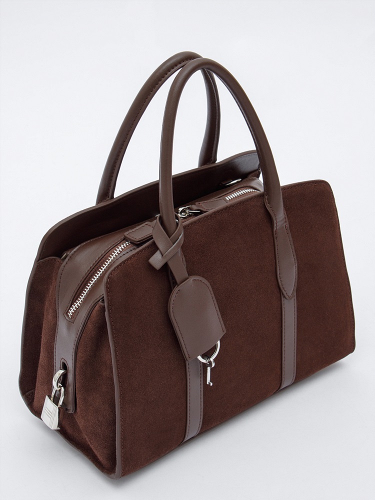 Длина (см): 26 Высота (см): 19 Вес (г): 700 Бренд: Natale Navetta Материал: Замша Базовая сумка, выполнена из замши. Декорирована брелоком. Дополнена серебристой фурнитурой. Данная модель закрывается на молнию. Каркас полужесткий. Носится в руке за встроенные ручки или на плече. В комплекте имеется съемный ремень с регулировкой длины. На дне предусмотрены ножки. Внутри: подкладочная ткань, на боковых частях карман на молнии и без. Снаружи: основой отдел закрывается на молнию и два с быстрым доступом. Комментарии к товару