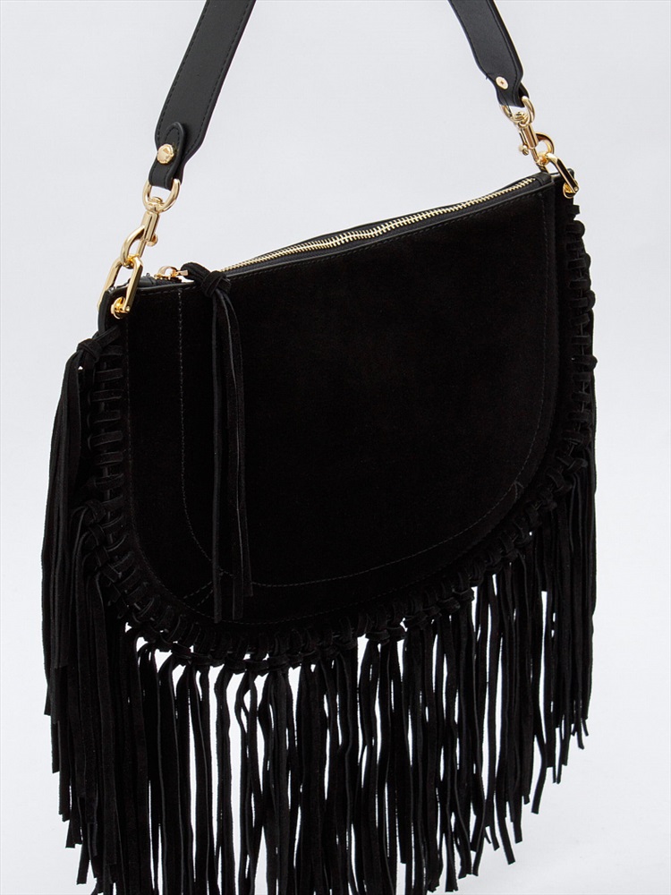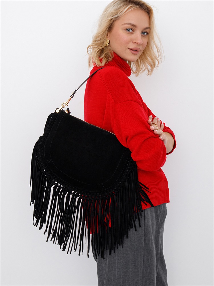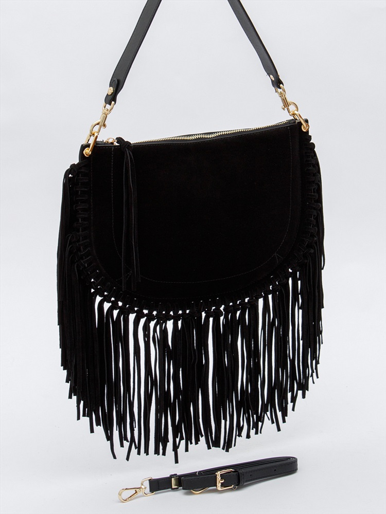 Длина (см): 31 Высота (см): 23 Вес (г): 650 Бренд: Natale Navetta Материал: Замша Эффектная модель, выполнена из замши. Декорирована бахромой. Дополнена золотистой фурнитурой. Данная модель закрывается на молнию Каркас мягкий. Носится в руке за съемную удлиненную ручку или на плече. В комплекте имеется съемный ремень с регулировкой длины. Внутри: подкладочная ткань, на боковых частях карман на молнии и без. Снаружи: основной отдел закрывается на молнию. Комментарии к товару