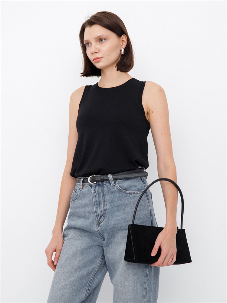 Небольшая базовая модель, выполнена из натуральной замши. Дополнена серебристой фурнитурой. Данная модель закрывается на молнию. Каркас жесткий. Носится через в руке за съемную ручку или на плече. Плечевой ремень регулируется по длине.