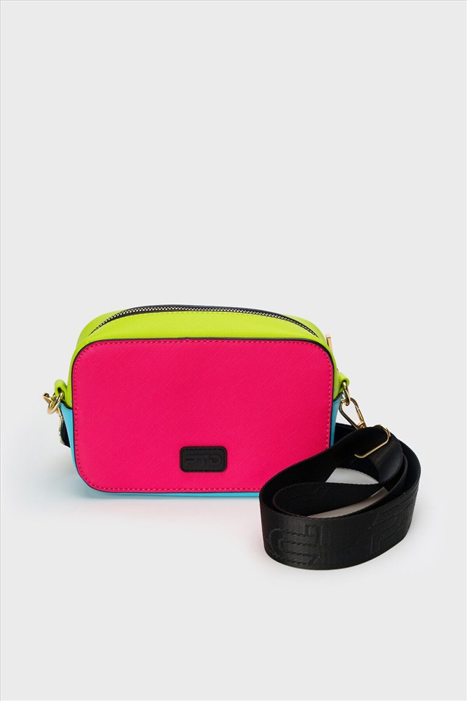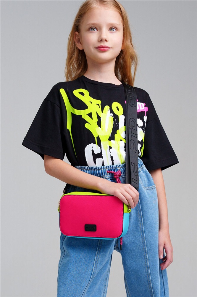 Небольшая, жесткой формы, сумка кросс-боди для девочки-подростка выполнена в стиле колор-блок. Брендированный ремень регулируется. Основное отделение на молнии, сзади - отделение для транспортной карты, внутри есть карман на молнии. Параметры: высота - 12 см, ширина -19 см, глубина - 6 см.