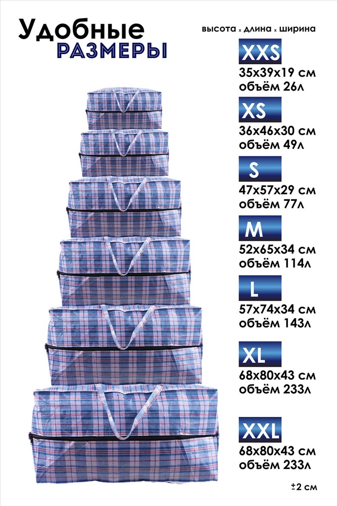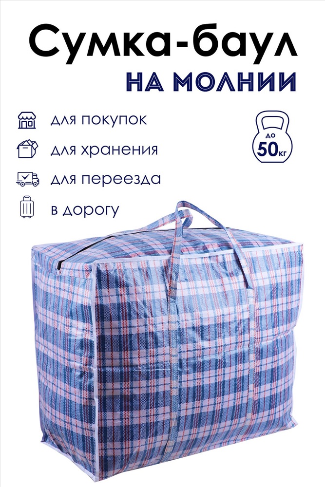 Сумка хозяйственная на молнии первого сорта сделана из износостойкой полипропиленновой ткани, по технологии корзиночного плетения волокон. Имеет два таких слоя по всей площади. Благодаря этому внутрь хозяйственной сумки баул не проникает грязь и влага, она очень прочная на разрыв. Применяется как упаковка для перевозки товаров, транспортировки грузов. Незаменимы в торговых точках, магазинах, на ярмарках и рынках. Застежка - молния. Сумка изготавливается в 6-и размерах, можно выбрать удобный для себя размер или даже комплект из разных размеров XS 40х37х20 S 46х40х20 M 52х47х30 L 64х50х31 XL 69х56х35 XXL 80х69х35