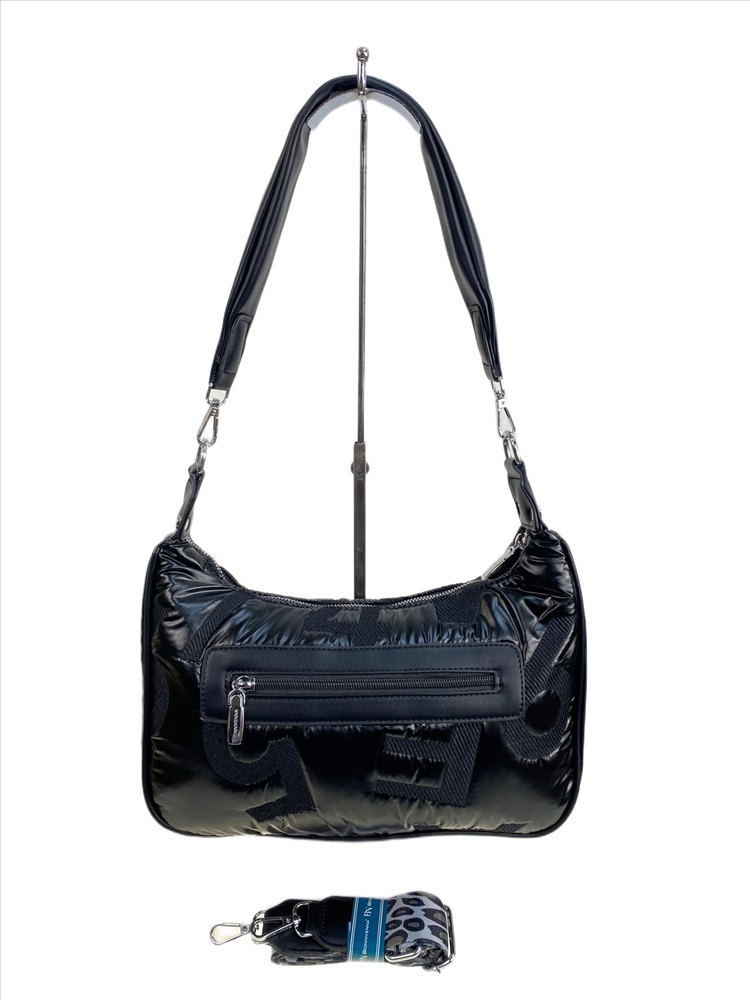 Женская сумка кроссбоди из болоньи хорошо держит форму и прекрасно подходит на каждый день. Стильный аксессуар можно носить как на плече, так и через плечо. Закрывается на молнию, внутри одно основное отделение, два дополнительных кармана на молнии и два открытых кармана. Снаружи на задней стенке карман на молнии. В комплекте широкий текстильный ремень.