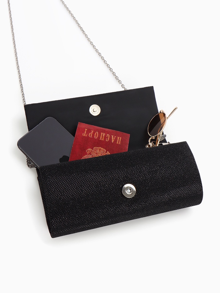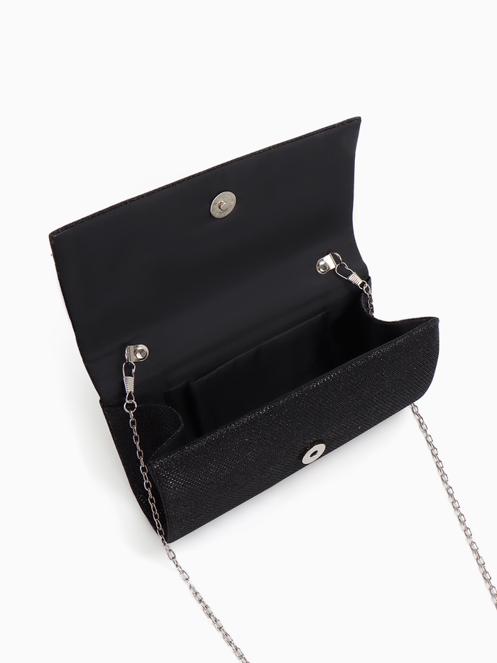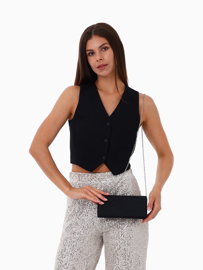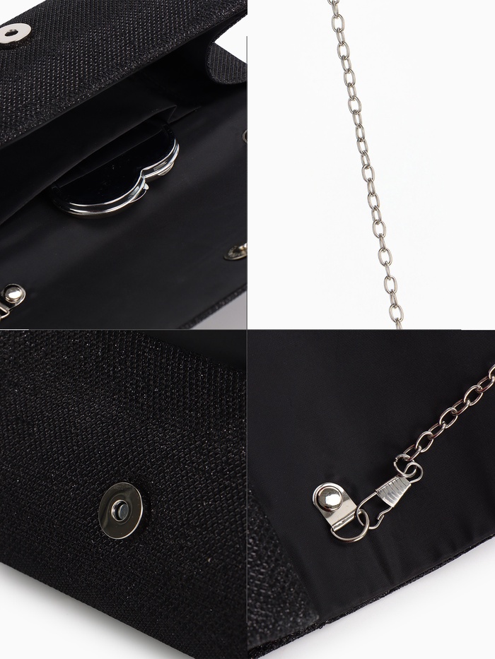 - Жесткий каркас и однотонный дизайн: Черный цвет в сочетании с жесткой формой и серебряной фурнитурой придает аксессуару утонченный вид. Эта сумка станет идеальным выбором для особых случаев.
