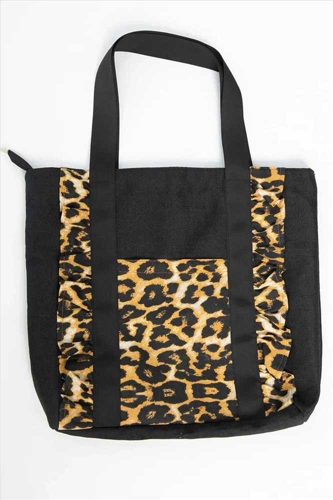 Состав : сумочная рогожка - 100% полиэстер, джинс - 70% хлопок, 30% полиэстер Материал : сумочная рогожка и джинс Цвет : Черный Принт : леопард Вид застежки : молния