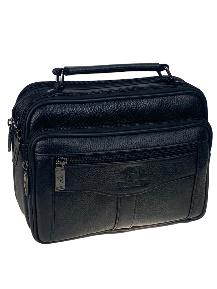 Функциональная мужская сумка из натуральной кожи. Подойдёт на каждый день. Сумку можно носить в руках, на плече . В комплекте текстильный ремень, регулируется по длине. Сумка имеет два отделения, каждое закрывается на молнию. Внутри дополнительный карман на молнии. На фронтальной стенке накладной карман на молнии и прорезной карман на молнии. На задней стенке прорезной карман на молнии.