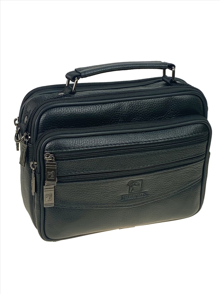 Функциональная мужская сумка из натуральной кожи. Подойдёт на каждый день. Сумку можно носить в руках, на плече . В комплекте текстильный ремень, регулируется по длине. Сумка имеет два отделения, каждое закрывается на молнию. Внутри дополнительный карман на молнии. На фронтальной стенке накладной карман с тремя прорезными карманами на молнии. На задней стенке прорезной карман на молнии.