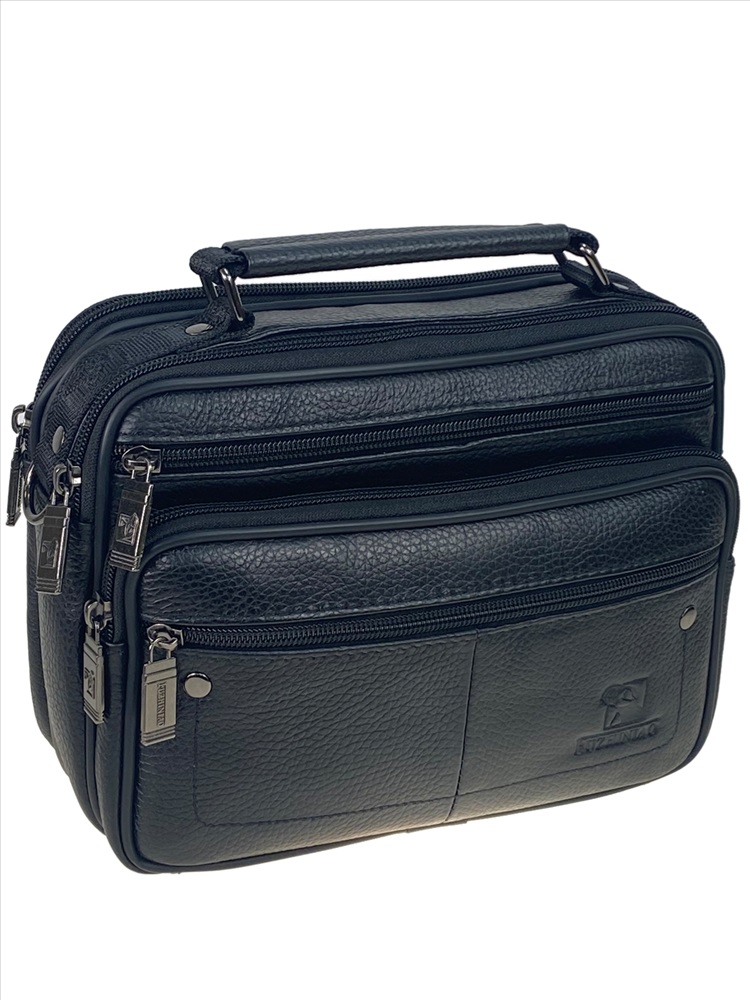 Длина: 21 см Высота: 18 см Ширина: 7 см Длинный ремень: Да Вес: 650 гр Материал: Натуральная кожа Подклад: Текстиль Тип застёжки: Молния Упаковка: Тканевый пакет, полиэтиленовый пакет Функциональная мужская сумка из натуральной кожи. Подойдёт на каждый день. Сумку можно носить в руках, на плече . В комплекте текстильный ремень, регулируется по длине. Сумка имеет два отделения, каждое закрывается на молнию. Внутри дополнительный карман на молнии. На фронтальной стенке прорезной карман на молнии и накладной карман с двумя прорезными карманами на молнии. На задней стенке прорезной карман на молнии.