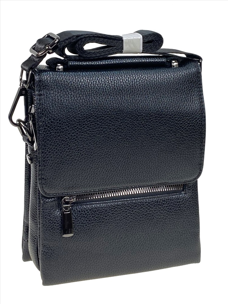 Функциональная мужская сумка из натуральной кожи . Подойдёт на каждый день. Сумку можно носить в руках и на плече. В комплекте текстильный ремень, регулируется по длине. Сумка закрывается на клапан и молнию. Под молнией основное отделение закрывается на молнию, два отделения по бокам - открытых. На фронтальной стенке прорезной карман на молнии. На задней стенке прорезной карман на молнии.