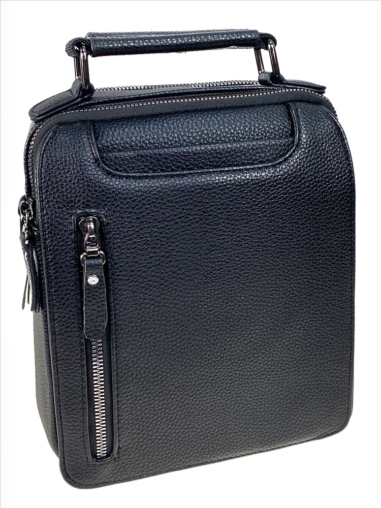 Функциональная мужская сумка из натуральной кожи . Подойдёт на каждый день. Сумку можно носить в руках и на плече. Текстильный ремень регулируется по длине. Сумка имеет два отделения, каждое закрывается на молнию. На фронтальной стенке накладной карман с клапаном на магнитной кнопке и прорезной карман на молнии. На задней стороне прорезной карман на молнии.