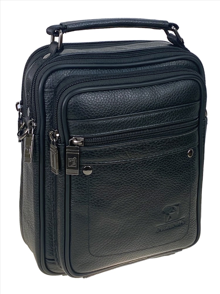 Функциональная мужская сумка из натуральной кожи. Подойдёт на каждый день. Сумку можно носить в руках, на плече . В комплекте текстильный ремень, регулируется по длине. Сумка имеет два отделения, каждое закрывается на молнию. Внутри дополнительный карман на молнии. На фронтальной стенке накладной карман на молнии и прорезной карман на молнии. На задней стенке прорезной карман на молнии.