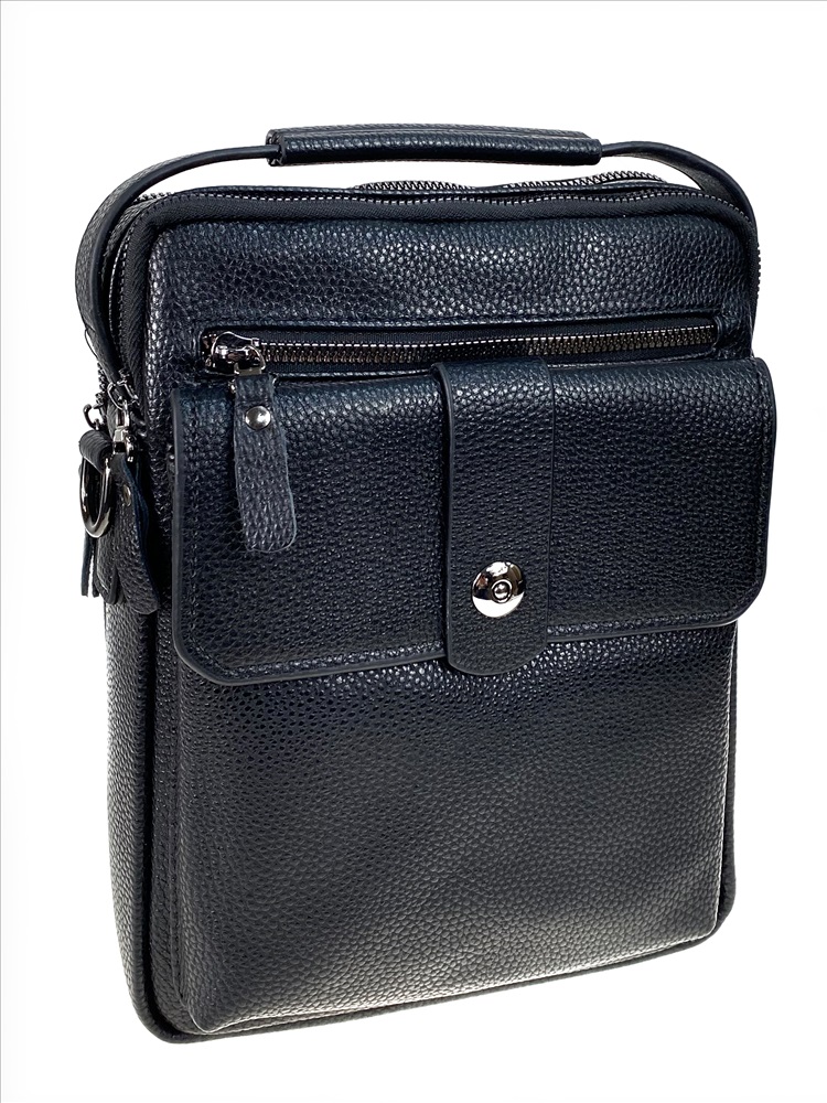Функциональная мужская сумка из натуральной кожи . Подойдёт на каждый день. Сумку можно носить в руках и на плече. Текстильный ремень регулируется по длине. Сумка имеет одно отделение, закрывается на молнию. На фронтальной стенке накладной карман с клапаном на магните и прорезной карман на молнии. На задней стороне накладной карман на молнии и прорезной карман на молнии.