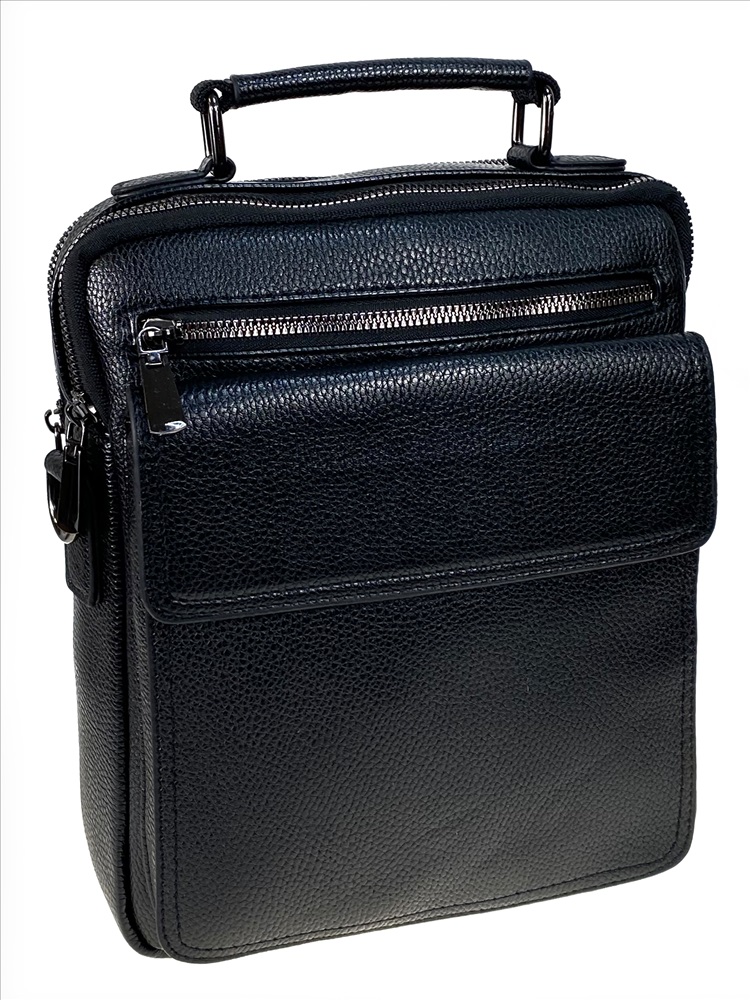 Функциональная мужская сумка из натуральной кожи . Подойдёт на каждый день. Сумку можно носить в руках и на плече. Текстильный ремень регулируется по длине. Сумка имеет два отделения, каждое закрывается на молнию. На фронтальной стенке прорезной карман на молнии, и накладной карман с клапаном на магнитных кнопках. На задней стороне прорезной карман на молнии.