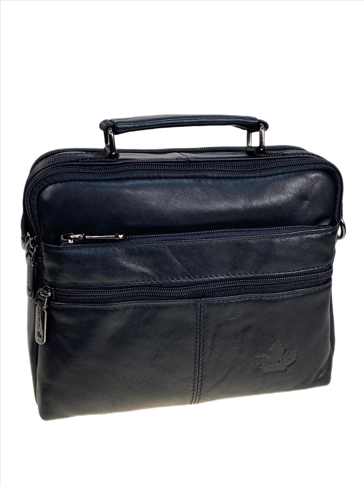 Функциональная мужская сумка из натуральной кожи. Сумка имеет два отделения, каждое застегивается на молнию. Снаружи, на передней стенке два кармана на молнии. На задней стенке карман на магнитной кнопке. В комплекте текстильный плечевой ремень.