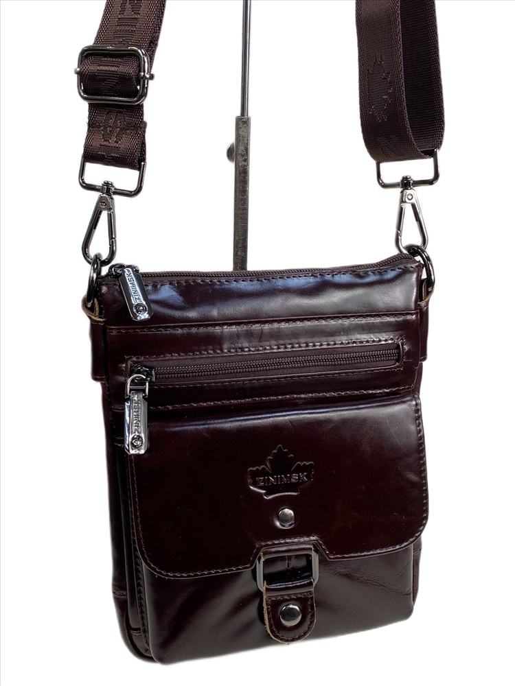 Длина: 17 см Высота: 22 см Ширина: 2.5 см Материал: Натуральная кожа Подклад: Текстиль Тип застёжки: Молния Упаковка: Тканевый пакет Функциональная мужская сумка из натуральной кожи. Сумка закрывается на молнию, внутри одно основное отделение, дополнительный открытый карман и карман на молнии. Снаружи, на передней стенке карман с клапаном на магнитной кнопке и прорезной карман на молнии. На задней стенке карман на молнии. В комплекте текстильный плечевой ремень.