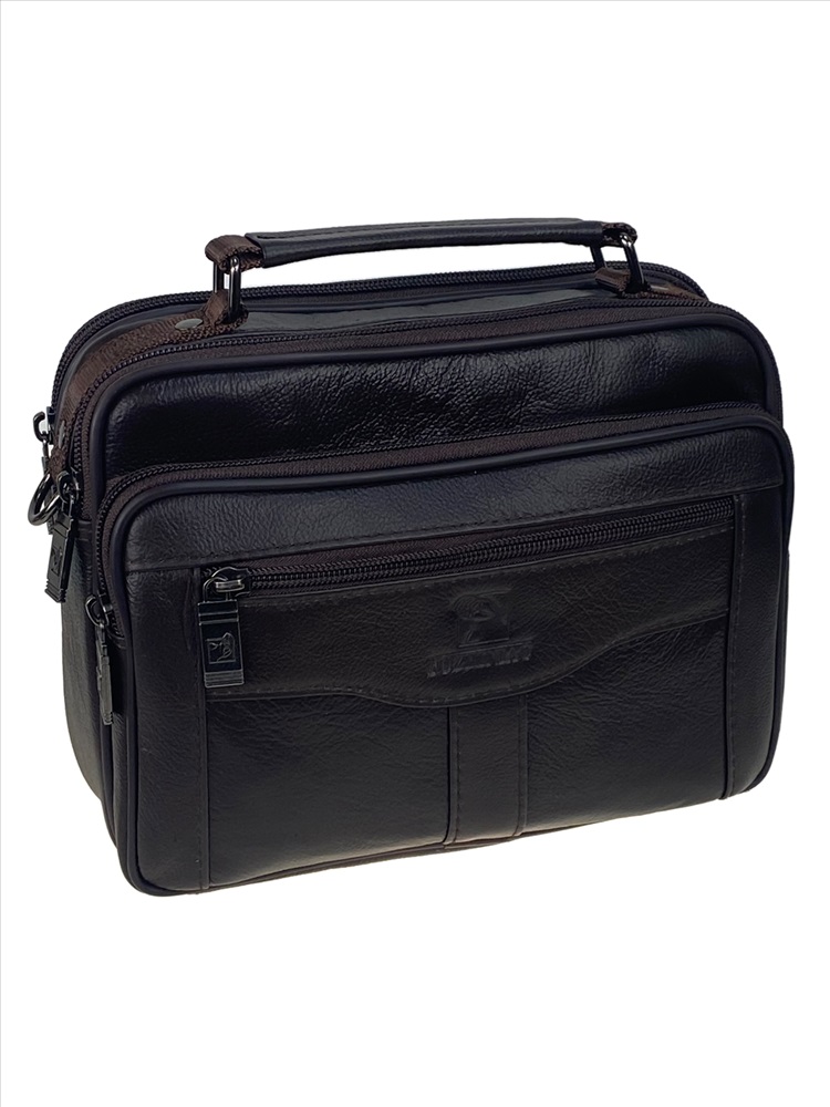 Функциональная мужская сумка из натуральной кожи. Подойдёт на каждый день. Сумку можно носить в руках, на плече . В комплекте текстильный ремень, регулируется по длине. Сумка имеет два отделения, каждое закрывается на молнию. Внутри дополнительный карман на молнии. На фронтальной стенке накладной карман на молнии и прорезной карман на молнии. На задней стенке прорезной карман на молнии.
