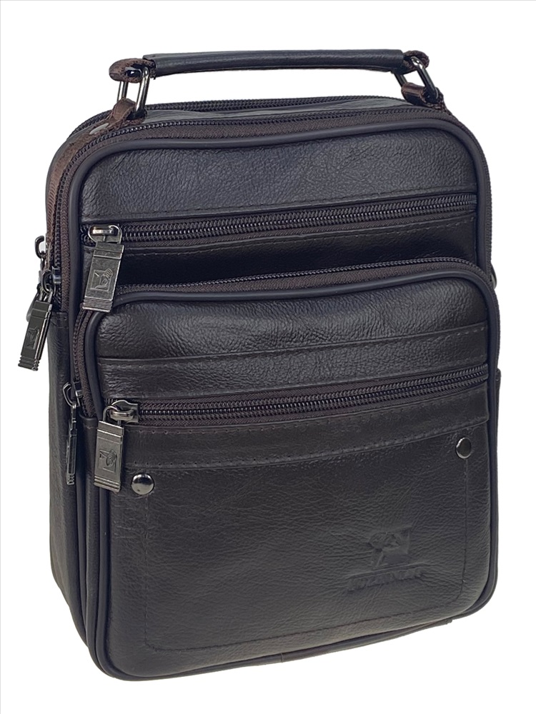 Длина: 17 см Высота: 22 см Ширина: 8 см Длинный ремень: Да Вес: 750 гр Материал: Натуральная кожа Подклад: Текстиль Тип застёжки: Молния Упаковка: Тканевый пакет, полиэтиленовый пакет Функциональная мужская сумка из натуральной кожи. Подойдёт на каждый день. Сумку можно носить в руках, на плече . В комплекте текстильный ремень, регулируется по длине. Сумка имеет два отделения, каждое закрывается на молнию. Внутри дополнительный карман на молнии. На фронтальной стенке прорезной карман на молнии и накладной карман с двумя прорезными карманами на молнии. На задней стенке прорезной карман на молнии.