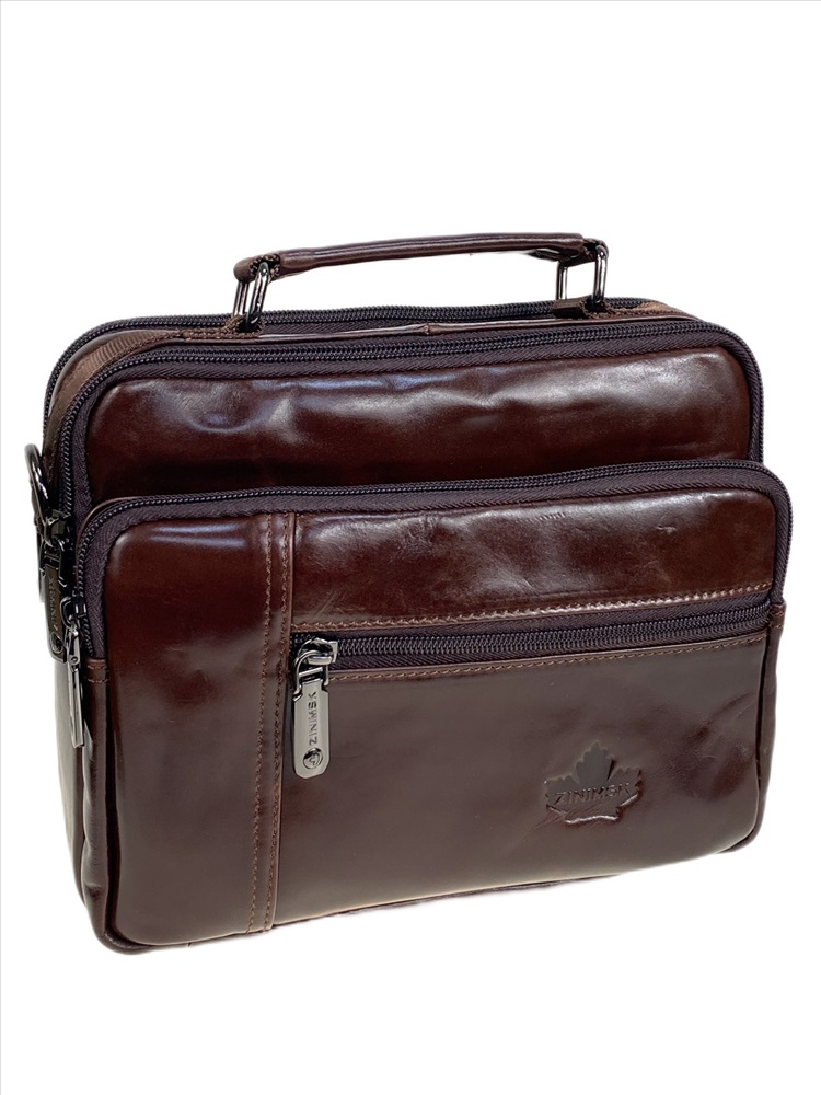 Функциональная мужская сумка из натуральной кожи. Сумка имеет два отделения, каждое застегивается на молнию. Снаружи, на передней стенке два кармана на молнии. На задней стенке карман на магнитной кнопке. В комплекте текстильный плечевой ремень.