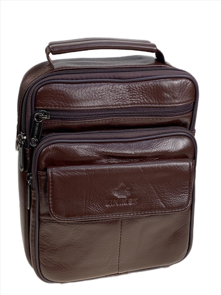 Функциональная мужская сумка из натуральной кожи. Сумка закрывается на молнию, внутри одно основное отделение и карман на молнии. Снаружи, на передней стенке два кармана на молнии и карман с клапаном на магнитной кнопке. На задней стенке карман на молнии. В комплекте текстильный плечевой ремень и ручка.