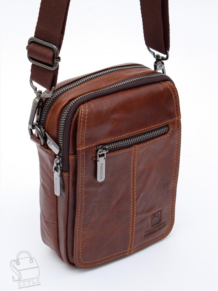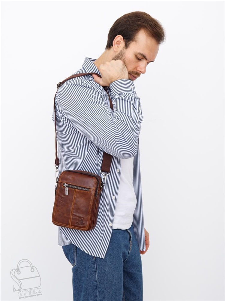Сумка мужская кожаная 8611S brown Fuzhiniao в Новосибирске