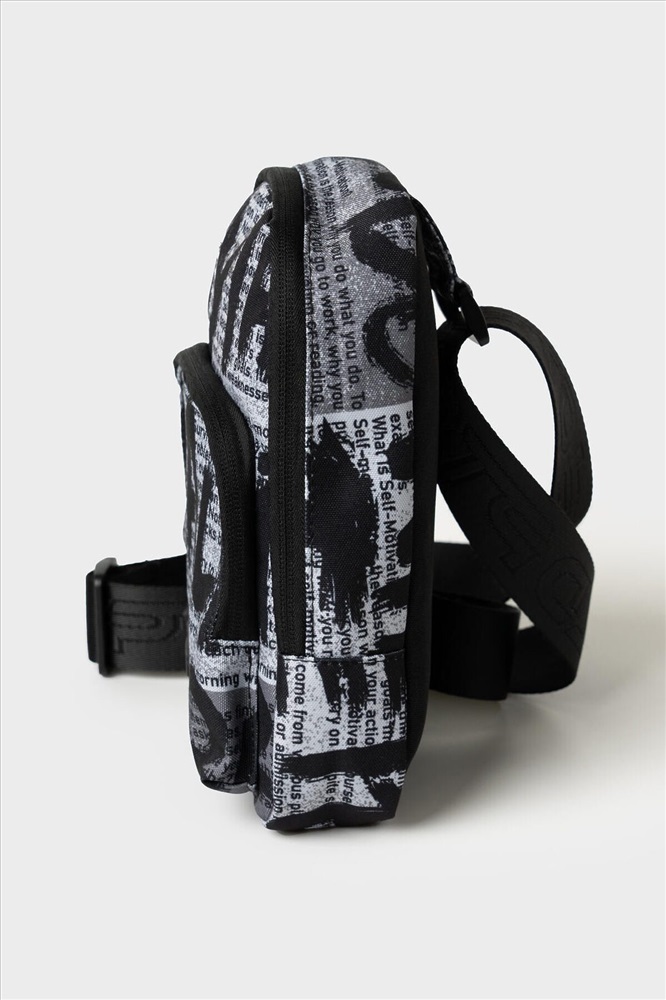 Трендовая сумка кросс-боди для мальчика-подростка. Регулируемый брендированный ремень. Основной отсек на молнии, спереди дополнительный карман на молнии, сзади карман для транспортной карты. Внутри есть карман на молнии. Параметры: высота - 18 см, ширина -13 см, глубина - 6 см.