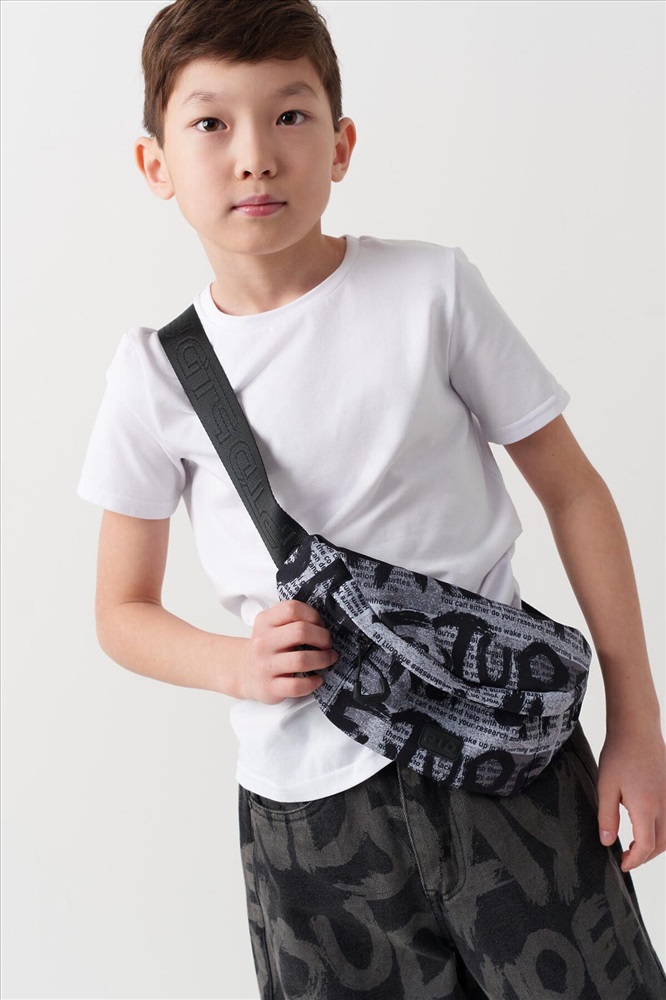 Трендовая сумка кросс-боди для мальчика-подростка. Регулируемый брендированный ремень. Основной отсек на молнии, спереди дополнительный карман на молнии, сзади карман для транспортной карты. Внутри есть карман на молнии. Параметры: высота - 18 см, ширина -13 см, глубина - 6 см.