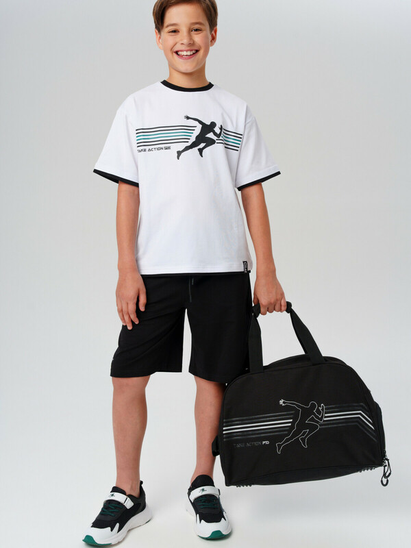 Спортивная сумка для мальчика подростка. Сумка текстильная, ручки с креплением, плечевой регулируемый ремень, карман передний на молнии, карман для обуви, внутренний карман на молнии, маленький карман для телефона, проездных документов или карт, светоотражающий принт. Снизу дна имеются резиновые "ножки", чтобы низ сумки не пачкался. Размер сумки: 43*28*21 см.