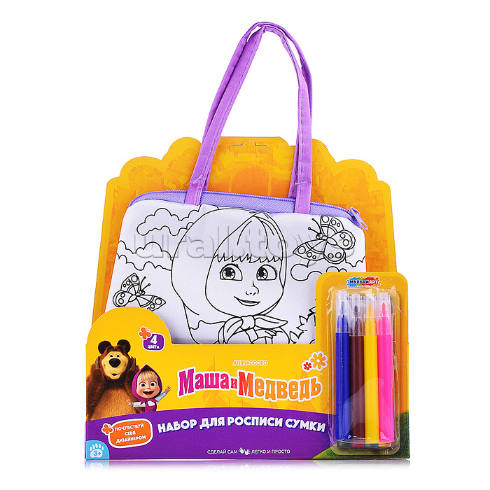 Код: 492548 Штрихкод: 4650250523727 Страна производитель: Китай Размеры упаковки: 20 x 20 x 5 см Количество в коробке: 15 В наборе: - сумочка для росписи. - фломастеры 4 шт. Для детей от 3 лет. Комментарии к товару