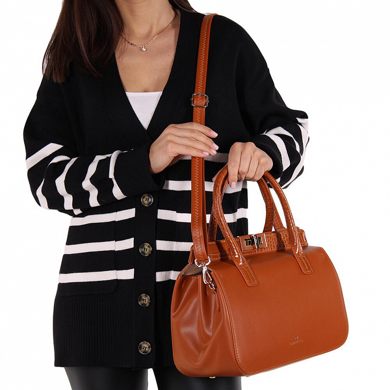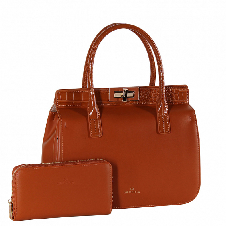 Материал: Экокожа добная сумка в комплекте с кошельком, выпалена из экокожи, дополнена золотистой фурнитурой. Данная модель закрывается на вертушку, носится в руке или через плечо с помощью тонкого ремня с регулировкой длины. Каркас сумки жесткий. На дне предусмотрены ножки.