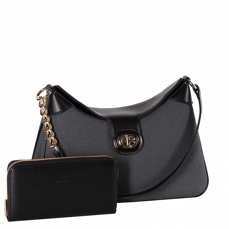 Эффектная модель выполнена из экокожи. Дополнена золотистой фурнитурой. Данная модель закрывается на клапан. Каркас полужесткий. Носится на плече за съемный ремень с регулировкой длины. Или в руке за удлиненную ручку. В комплекте есть кошелек.